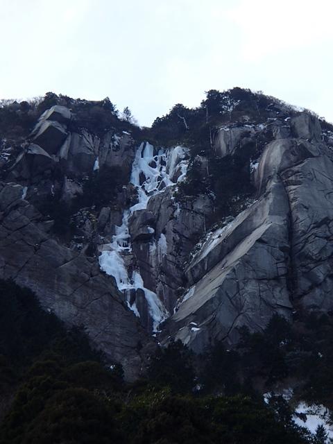 御在所の裏道登山道を歩いていると必ず目にするかっこいい中尾根バットレス、その左側に長く垂れる連瀑が中俣です。こちらもカッコよすぎです。