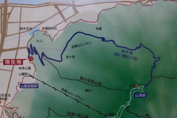 - 岐阜公園<馬ノ背登山道25分>山頂<瞑想の小径30分>岐阜公園