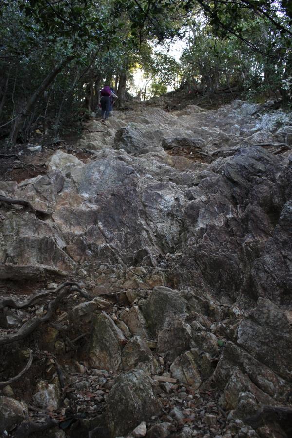 馬ノ背登山道ほどではないですが、上の方は岩場も少々あり。