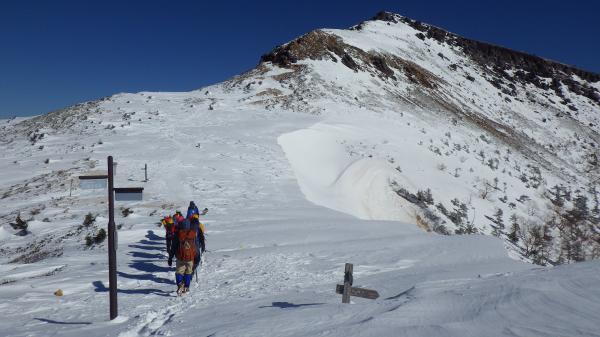 硫黄岳までの道はトレースがあるので歩きやすいです。