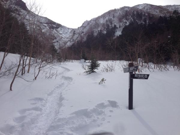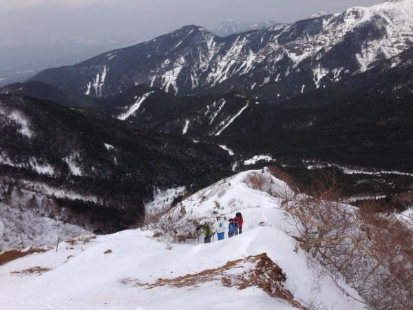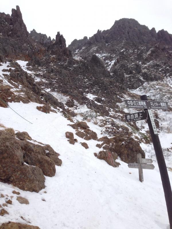 文三郎尾根の稜線の分岐からは雪と岩が混じっている状態でした。