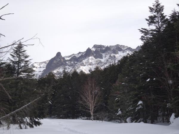 危惧していた文三郎尾根は、雪質が足首まで埋まる程度の適度な固さだった為着地がかえって安定し、意外にも下りの方が楽でした。途中カモシカの子供がひょいと顔を出し、ほっと和む瞬間もありました。それからは一気に下り、赤岳鉱泉まで駆け抜けました。