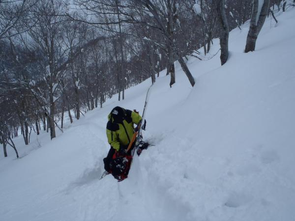 センター100mmオーバーのFATSkiを履いて膝までのラッセルが強いられる。