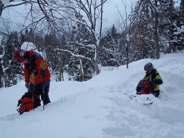 今回は、スタート時間が狂った事、トレースが予想より遠回りだった事、湿雪・深雪でSkiに適さなかった事など反省点も多く、今ひとつ不完全燃焼なバックカントリーでした。