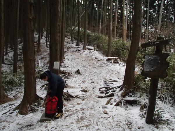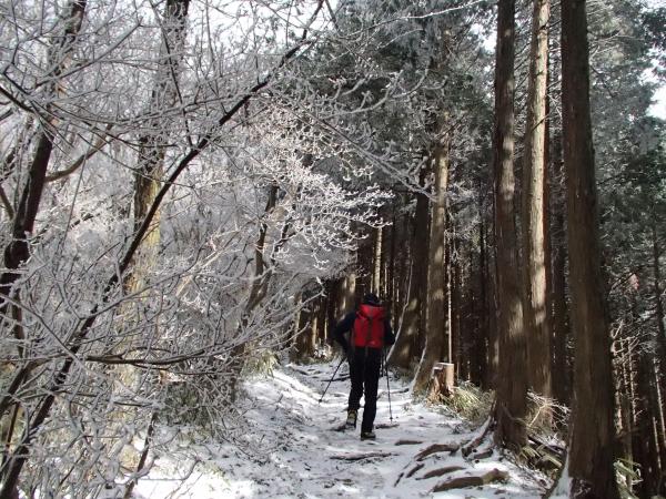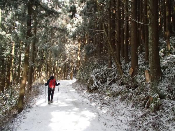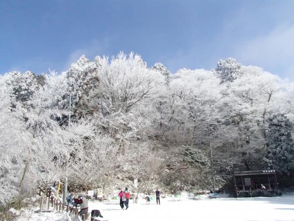 - 今回のコースはお気に入りの久留野峠経由のコース。整備も行き届き、迷う心配もありません。峠から千早園地まではロケーションむ良いですし、千早園地から山頂までも幅の広い緩やかな登りですので、景色をゆっくり楽しみながら登れます。最近暖かかったので、雪は千早園地より上部にうっすら積もっている程度ですが、山頂付近のみ凍結している所もあり、軽アイゼンは持っておいた方が無難です。