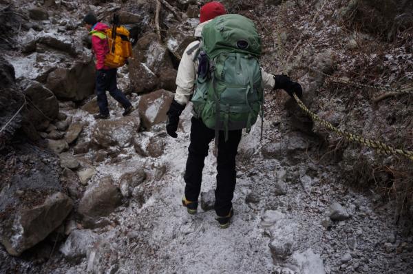 ・あせび小屋~段原……凍結箇所多し。下りはアイゼン装着をおすすめします。