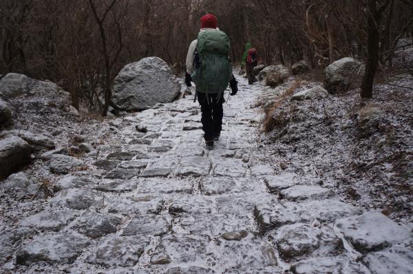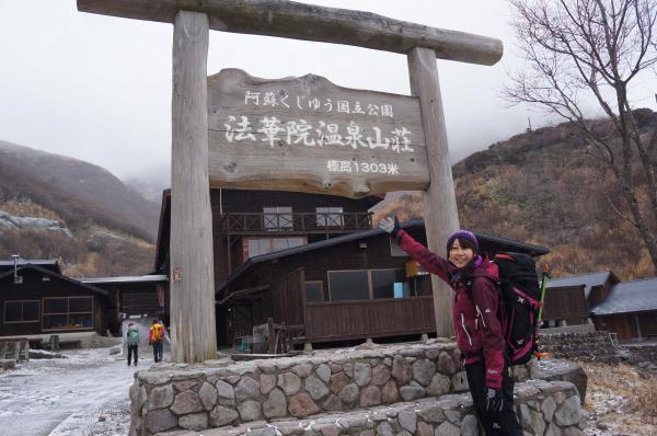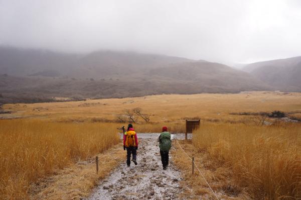 登山当日。少し粉雪舞う中でのスタートでしたが、初の九州の山にドキドキわくわく♪お宿の法華院温泉山荘も楽しみな一つでした^^