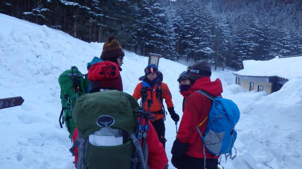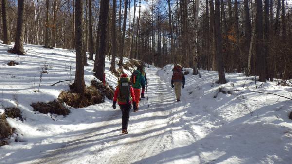 - 美濃戸口から赤岳鉱泉までの道は凍結しているので、アイゼンを付けてしまうか、チェーンアイゼンを付けるかがイイと思います。