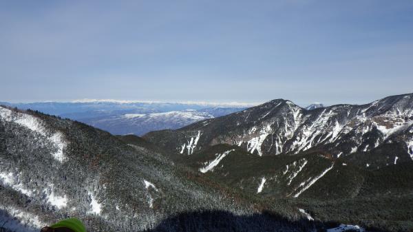 山頂では、晴れとはいきませんでしたが、それでもアルプスの山々、富士山も見ることができたので満足満足。風も強いので長居はせずに下山。