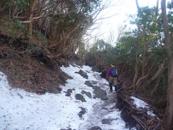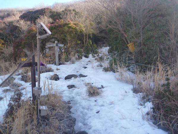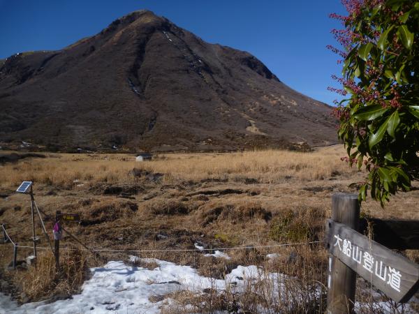 - 大船山登山口からはしっかり雪が付いています。また午前中は凍結もしているので軽アイゼンは必須装備です。