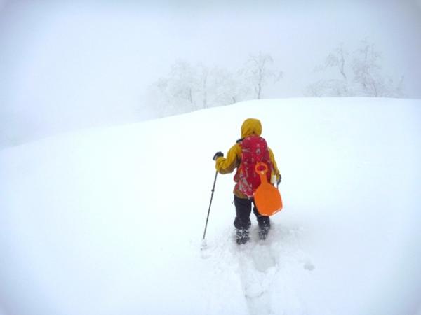 そんなに広くはないが、展望は最高。今回も天気に恵まれた。ついこの大展望にテンションが上がって長居してしまう。行動食を食べ、写真をたくさん撮り、最後に珈琲を飲んで仕方なく下山を開始する。午後になり、気温も上がったことでだいぶ雪が緩んできたことが爪の刺さり具合でわかる。“段原”を通過し、そのまま一気に下る。