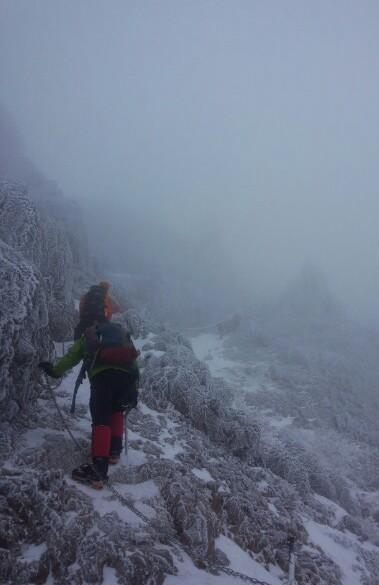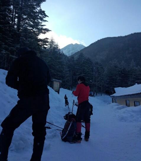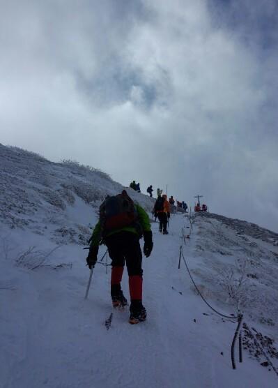 しかし、山の天気は変わりやすい!一時間ほどで雲が広がり、雪が少し降り始めました。早々に下山をし、温泉後帰宅です。思いっきり登山をし、楽しんだ二日間でした。ありがとうございました。