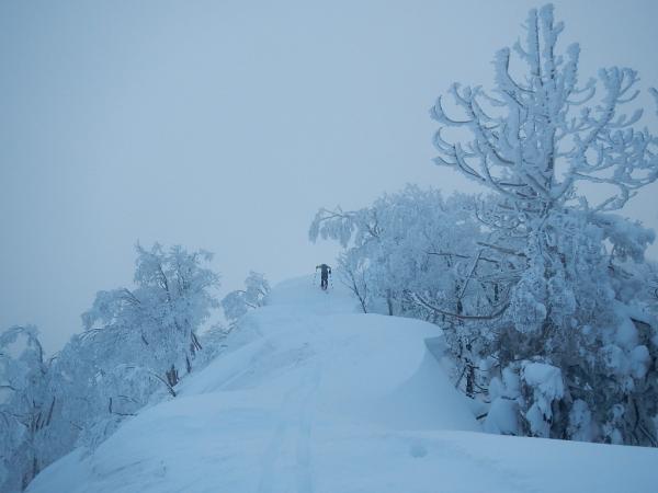 稜線はカリカリのバーンが顔を出している所もあり、クトー(スキーアイゼン)必須です。