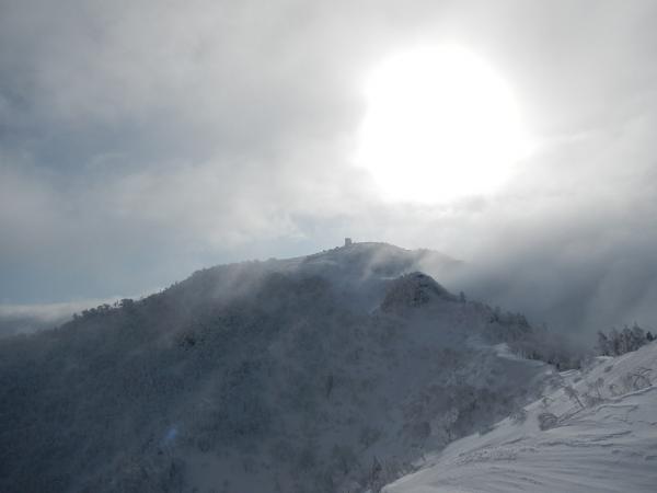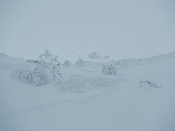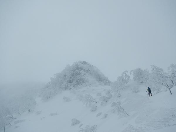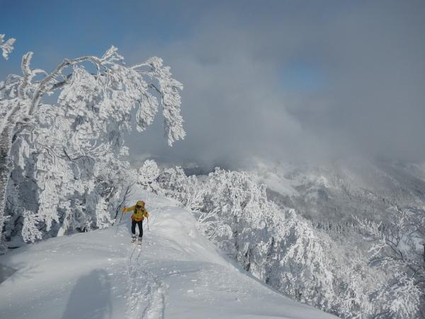 稜線に出ると風も強く、もろにアイスバーンが出ている所も多くありました。