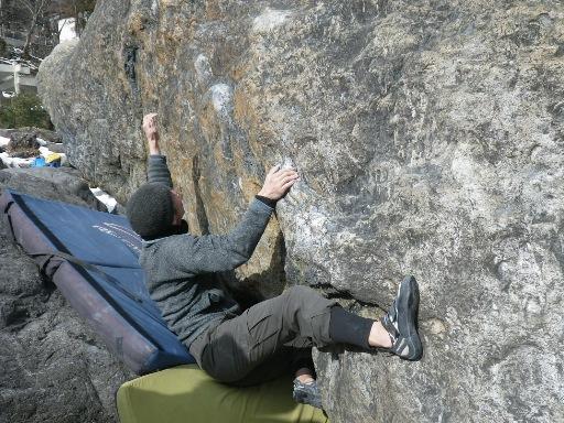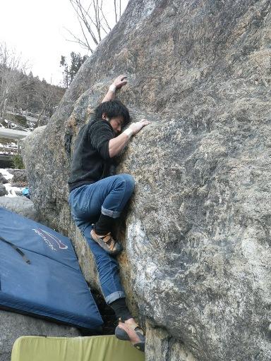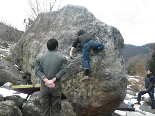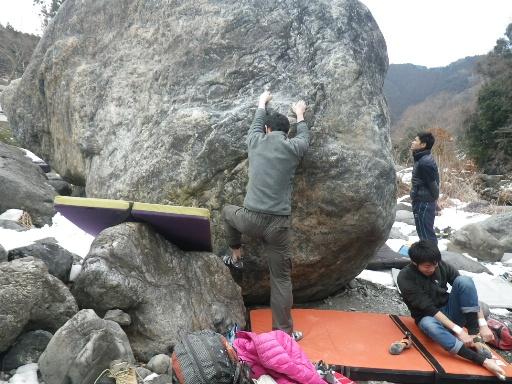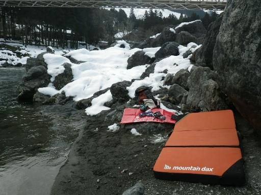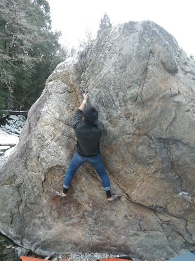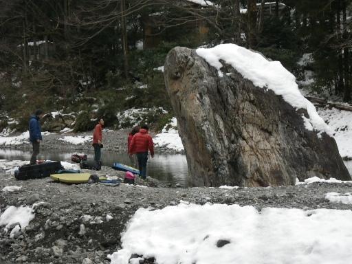 雨の日のデッドエンドから始まり、雪道アプローチの極寒の中州ボルダーと、もう、岩濡れてなきゃOK!て感じ。