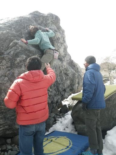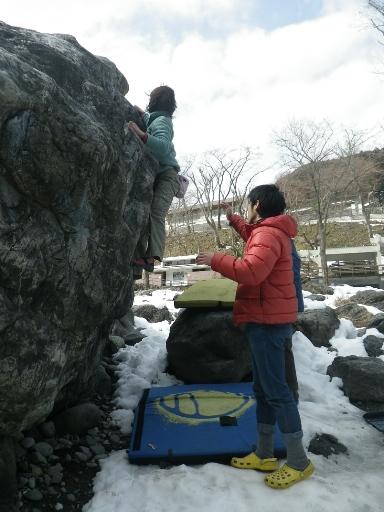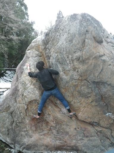 晴れの天気予報でしたが、分厚い雲に覆われて、またまた極寒のボルダリングに。。
