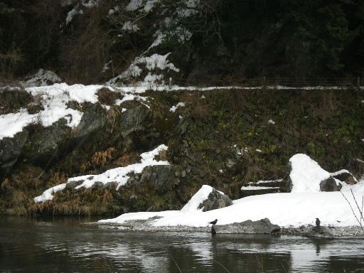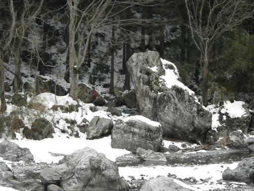 ■日のあたる小橋エリアのソフトクリーム岩周辺の岩は乾いていました。(対岸の岩は雪が残っています)