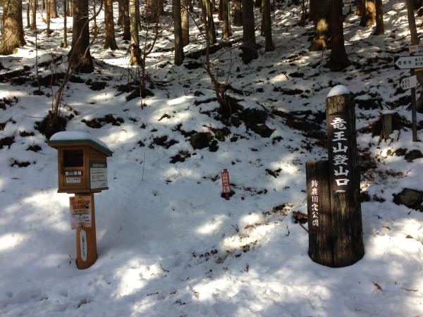 - 御幸橋駐車場(20分)表参道登山口(60分)5合目小屋(30分)冬季ルート分岐