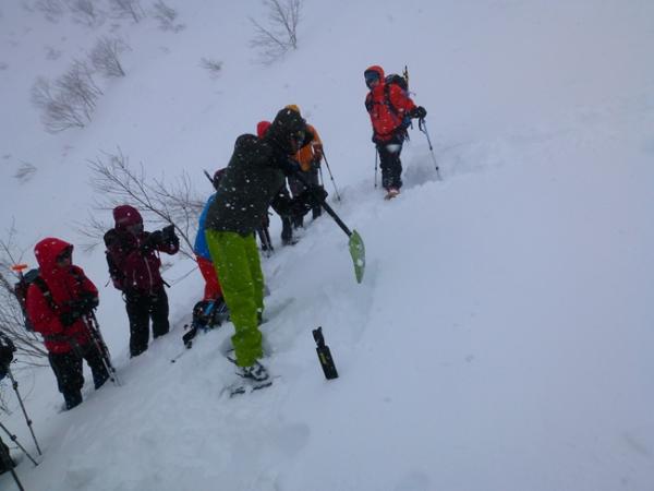 ビーコンの捜索講習は、実際捜索どまり。一日の中では時間切れ。