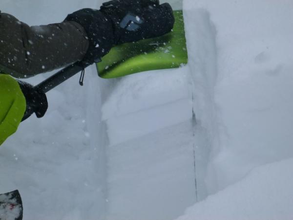 実際に雪を、積雪層状態を触って観察するのが初めての人は、こんな風にバームクーヘンとかミルフィーユみたいになっているとは思わないのですよね。初心者だった頃の私も・・・。
