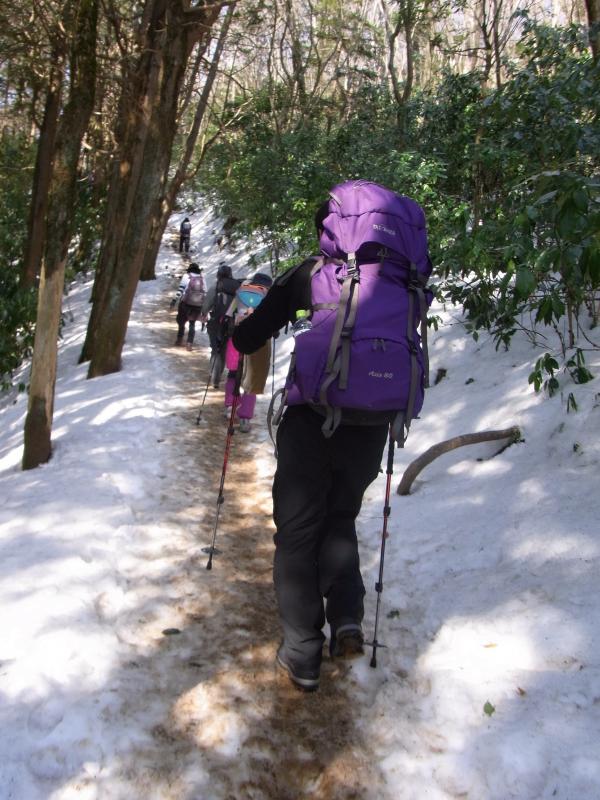 特に下りはずるずるとしたかんじで、軽アイゼンをつけていても岩の上とかは滑りやすいので注意が必要でした。