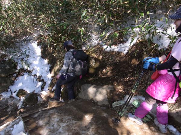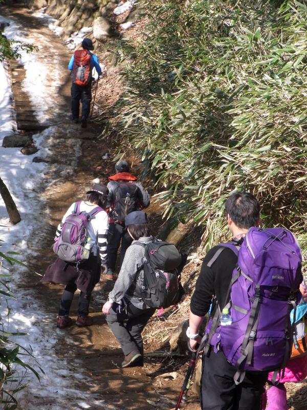 つつじが丘からの道はひらけているので雪はとけていましたが、樹林帯の中や日陰はけっこう雪が残っていて歩きにくかったです。