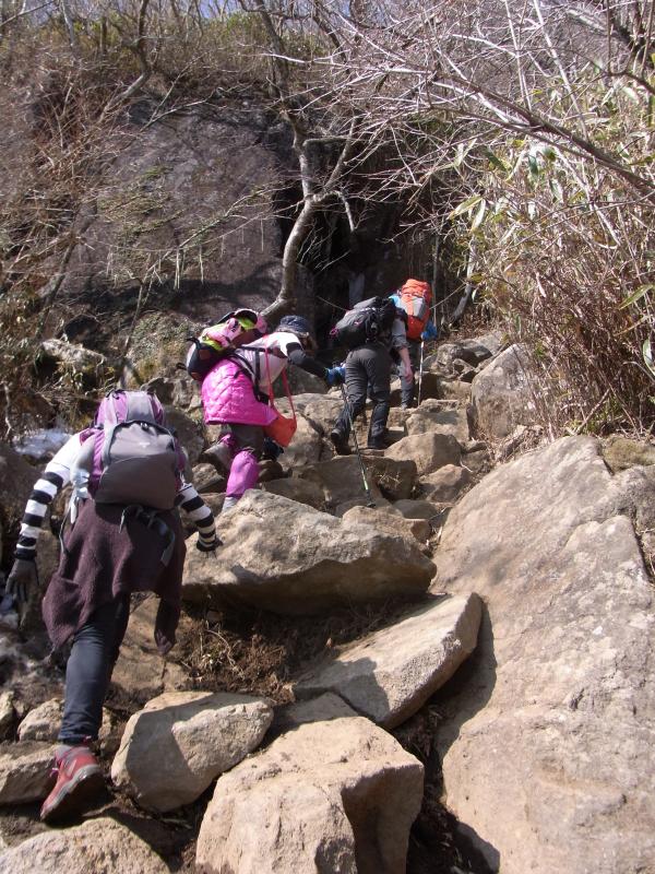 - 日陰には雪が残っていて、気温が高かったので表面がとけて歩きにくいところがありました。下山時には軽アイゼン必須です。