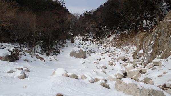 - 鈴鹿スカイライン旧料金所(1時間)藤内小屋(30分)藤内沢出合(1時間)第三ルンゼ~アイスクライミング後、中道から下山~(50分)地蔵岩(50分)鈴鹿スカイライン旧料金所