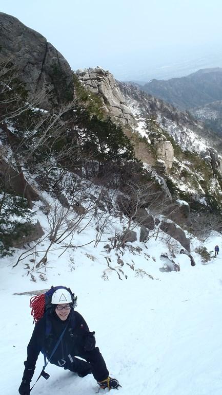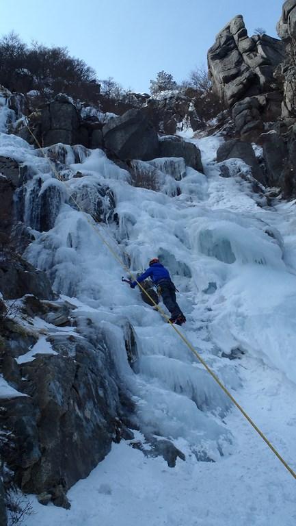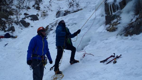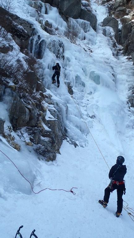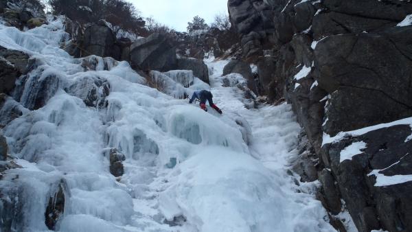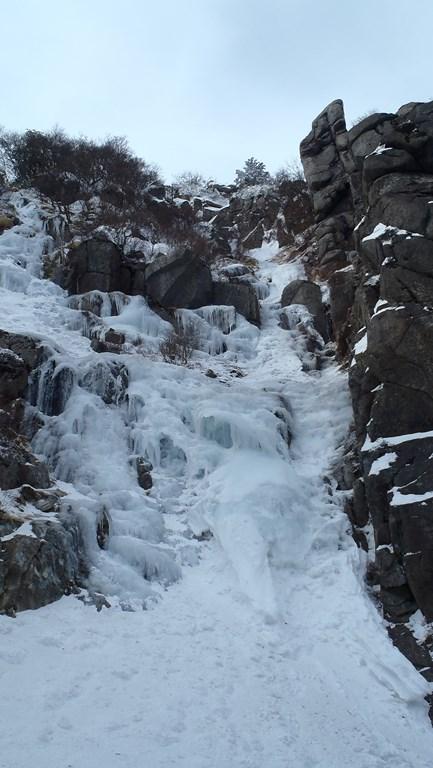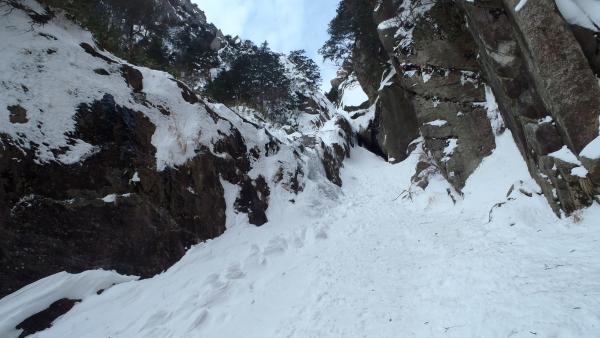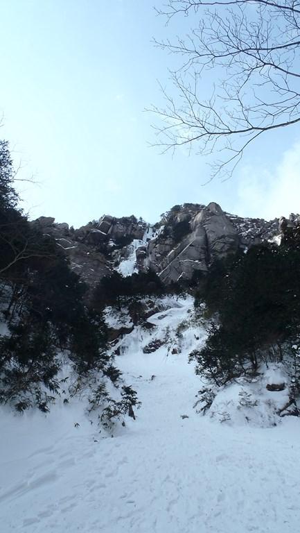 三ルンゼはよく氷結していました。アイゼン、バイルともよく刺さります。傾斜もゆるいので初心者のトップロープ、リードの練習には良いと思います。