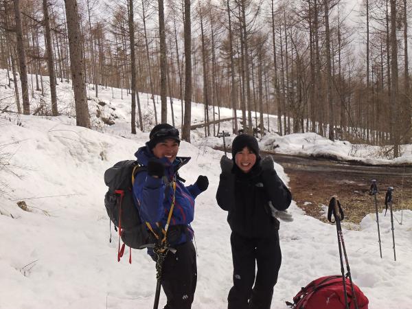 膝まで潜る場所もありますが、雪がしまっており登りやすいです。