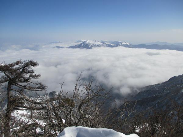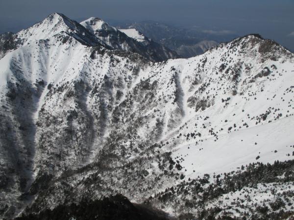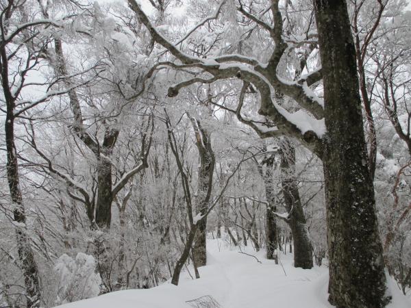 2泊3日の行程で石鎚山の東稜ルートを登って来ました。今年は雪が多く、トレースも前社森付近で無くなり、そこから先は膝から太股のラッセルとなりました。東稜に入ってからは柔らかい雪や締まった雪、氷が混じった急斜面の登りとなり、ピッケルやアイゼンの効き具合を確認しながら慎重に登りました。また、南尖峰への岩稜も雪に覆われており、手掛かり・足掛かりとなる岩を掘り出しながらのトラバースとなり、終始緊張した登山となりました。