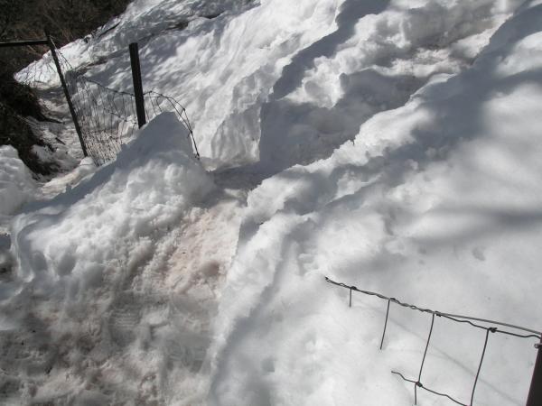 確かに、下社から二重の滝方面は大雪で橋が崩落し通行止めでした。