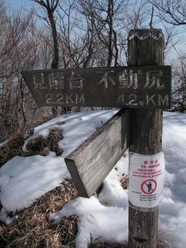 山頂から見晴台へは下山できません。日向薬師・ヤビツ峠への道は通れます。