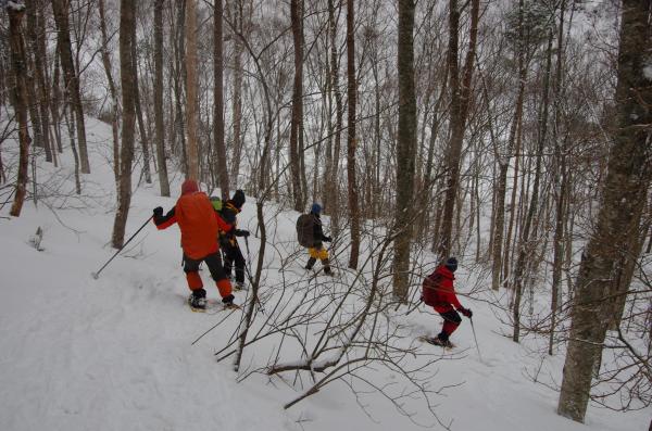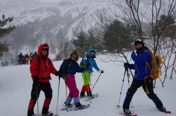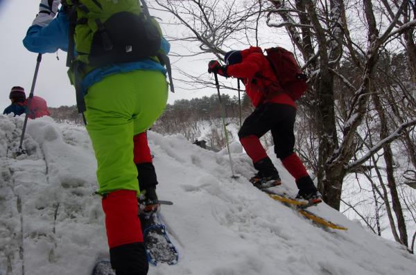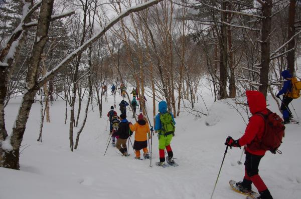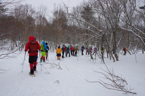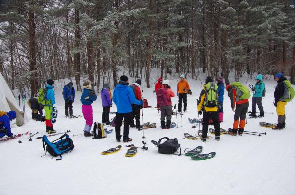 大雪のあった日以降あまり積雪がなかったせいか、ふかふかの深雪をスノーシュー特有の浮遊感が少なかったですが、昨日、今日と雪が降ってくれてガチガチでなくてよかったです。気温も低くなく休憩時にもダウンも羽織ることも無く快適でした。