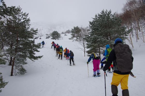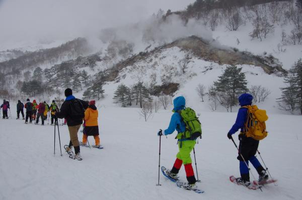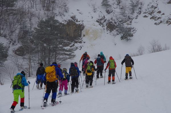 好日山荘登山学校・裏磐梯スノーシュー 黄色に染まったイエローフォールを求めて