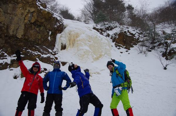 お目当てのイエローフォールに着いた頃には雪も止み、風も無くて写真撮影を楽しめました。