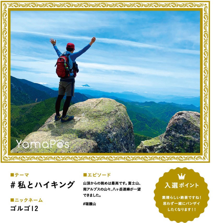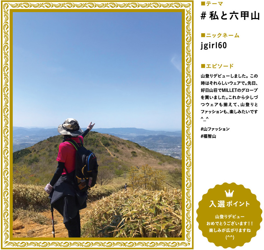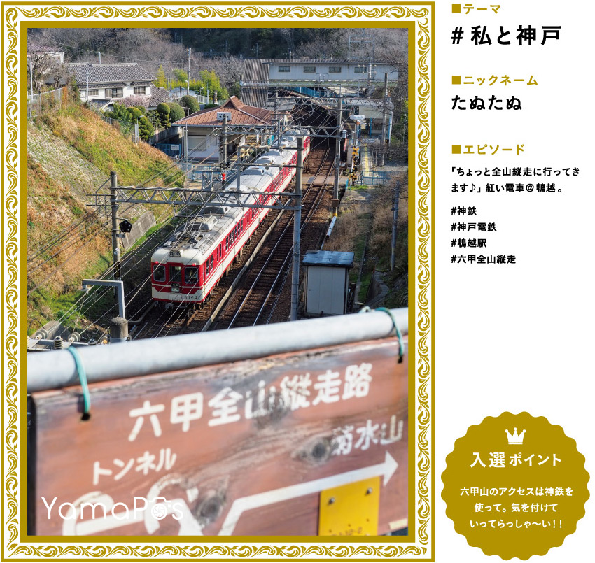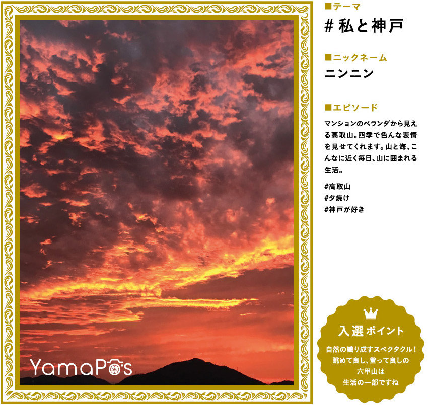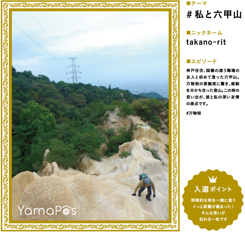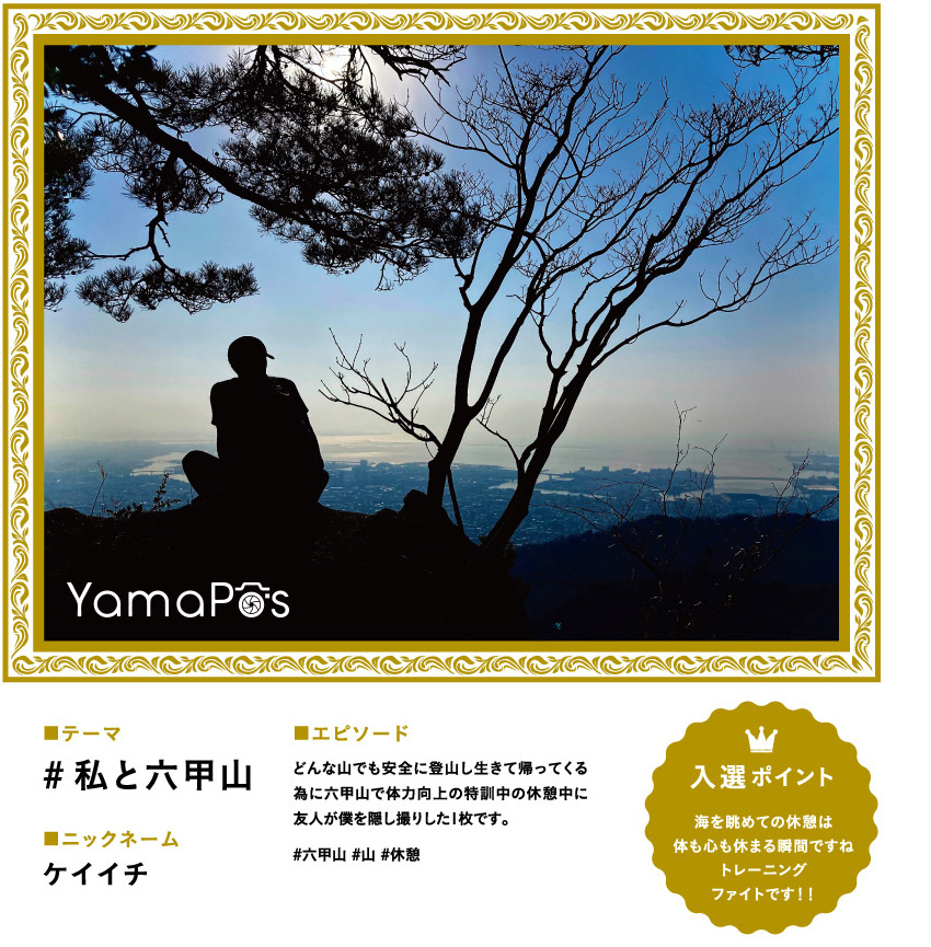 投稿カテゴリーの「#私と六甲山」「#私と好日山荘」「#私と神戸」「#私とハイキング」の中から一つお選びいただき、デジカメやスマホで撮った写真とその写真のエピソードをコメント欄に入れて投稿して下さい。