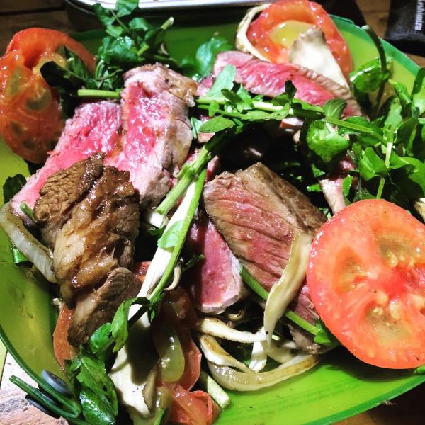 #八ヶ岳 #山ごはん #フライパン #肉 #サラダ