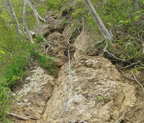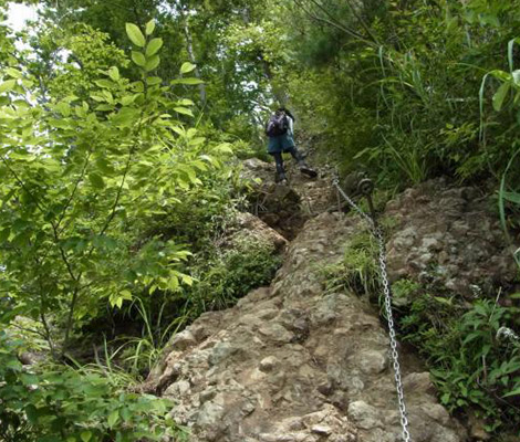 大円地からの「健脚コース」が特に変化があって楽しい。岩場、クサリ場が連続するので登りに使うのが最適です。下山は滑り易いので「一般コース」で。