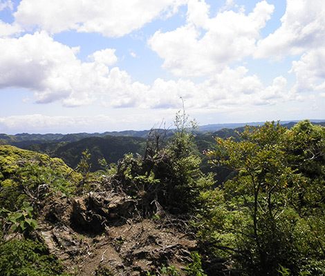 北峰の展望台・北峰と南峰との中間にある見晴台から海を眺めることができます。登山道はよく整備され、距離も長くないので小さなお子様も自分の力で登ることができます。最寄りの道の駅「富楽里とみやま」で手作り弁当を買って、海を眺めながら家族でピクニックランチはいかがでしょう♪下山をしたら近くの「ばんや」で美味しい海鮮丼もオススメです。