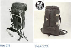 バーグハウス172モデルや272モデルをはじめとする、ハーグハウス初のリュックサックは、外部フレームを使い、コンパートメントが1つのベーシックなタイプでした。このような、ややトラディッショナルなスタイルのリュックサックが発表されてから2年後の1972年に登場したのが、真に革命的なリュックサック「サイクロプス」。おそらくは世界初の内部フレーム型のリュックサックです。