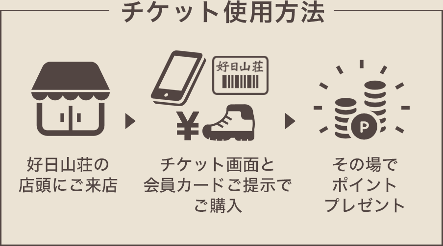 「登山に活躍するアイテム」にご使用いただけるチケットと