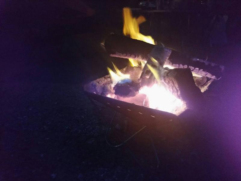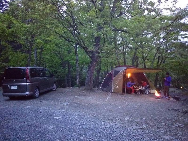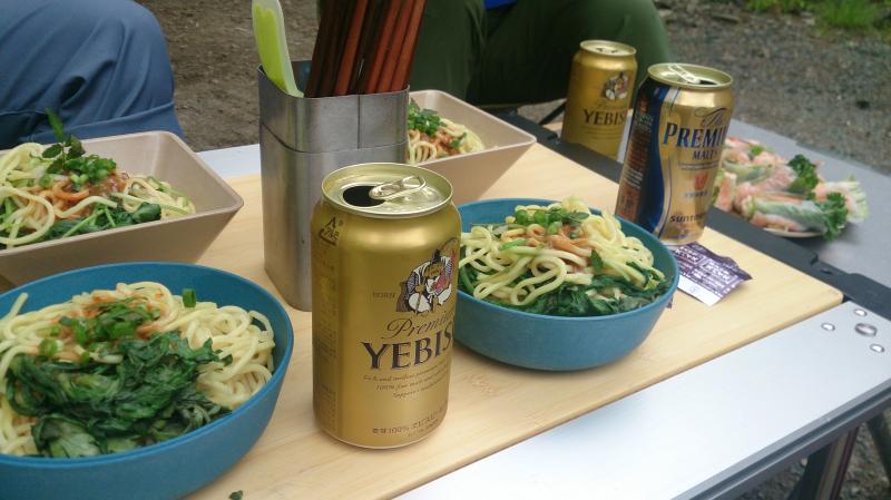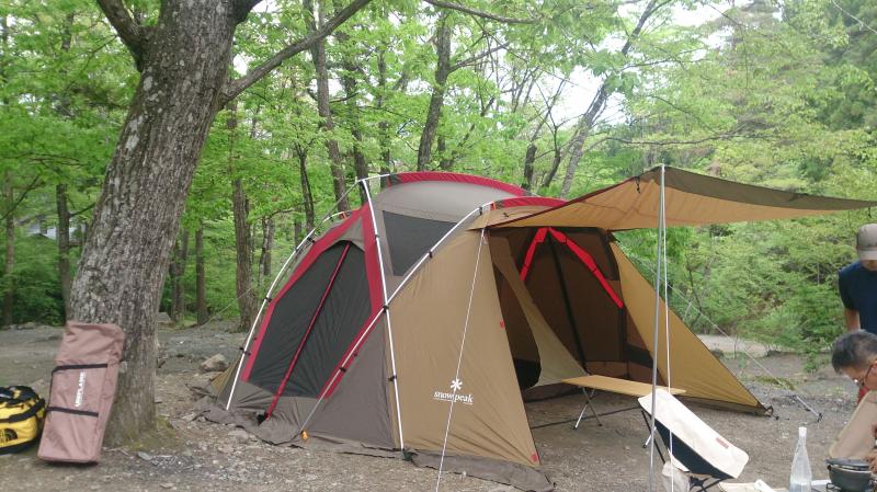 キャンプ場に着くと早速、テントをたてて、イスを出して( ^^)/▽乾杯!