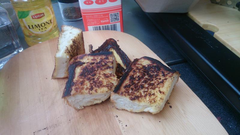 翌朝飯にはフレンチトースト、生ハムサラダ