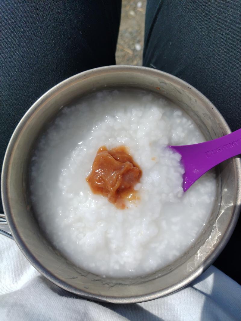 盛大に二日酔いの朝食は胃に優しい梅粥。つり橋を渡る気力も無く二度寝してゆっくり撤収しました。