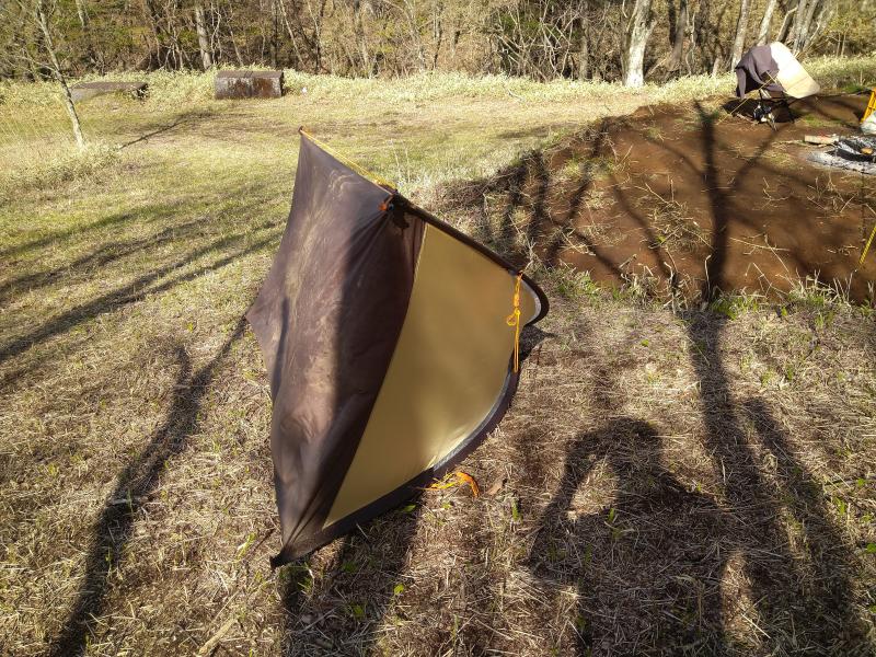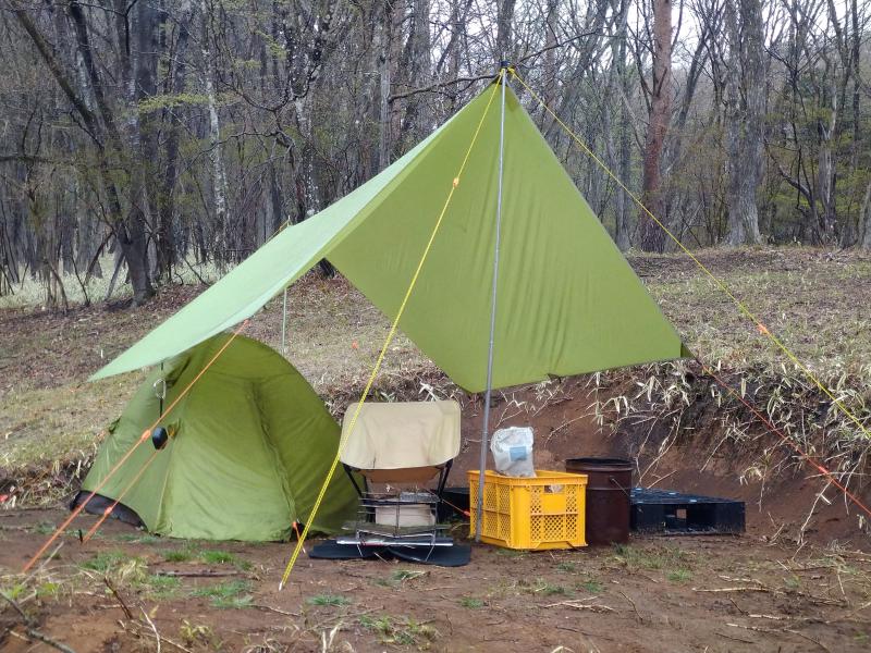 テントを建て、荷物を放り込みタープを設営。(ここまで20分。)