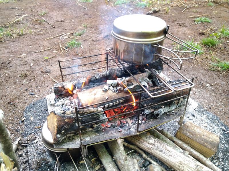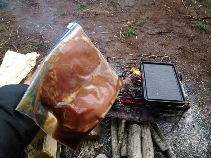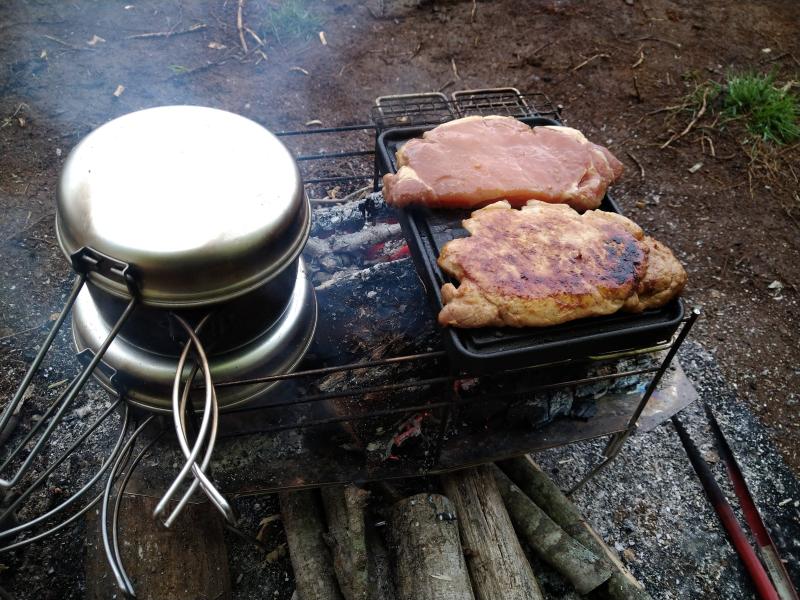 焚き火を熾して朝ごはん。