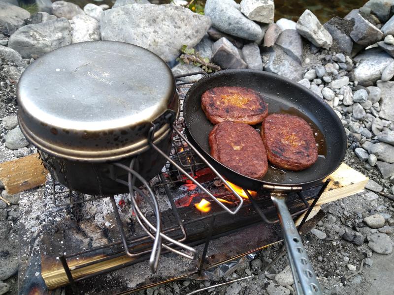 ・焚火炊飯 水を多めにし強火で10分、弱火で10~15分。火力は薪の量で調整、うまくできないときは物理的に抜くとよい。
