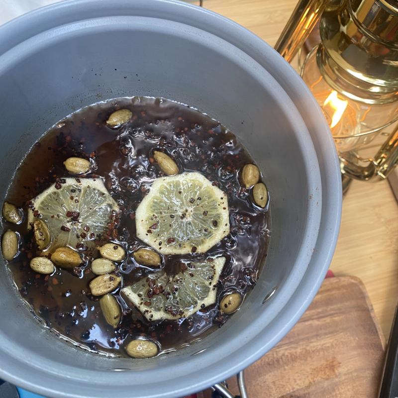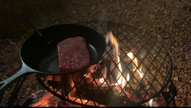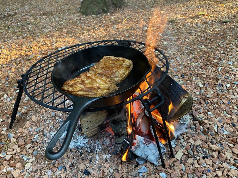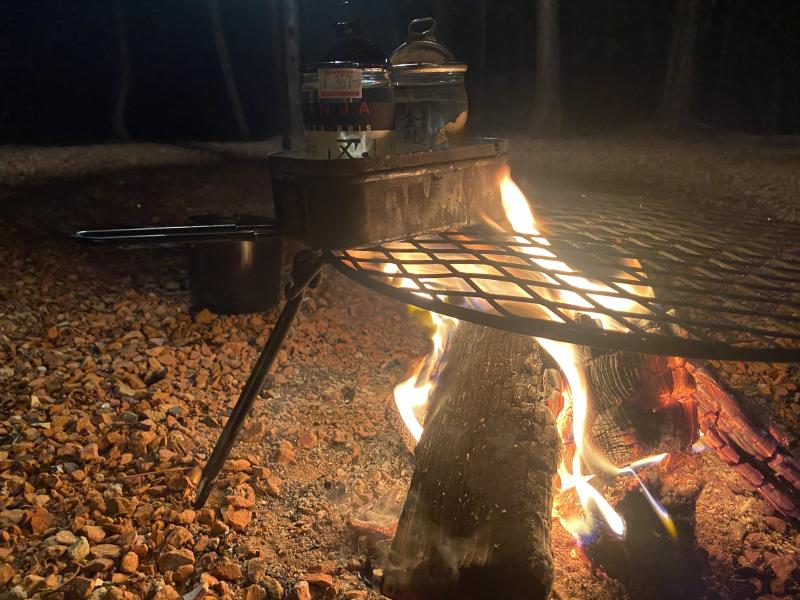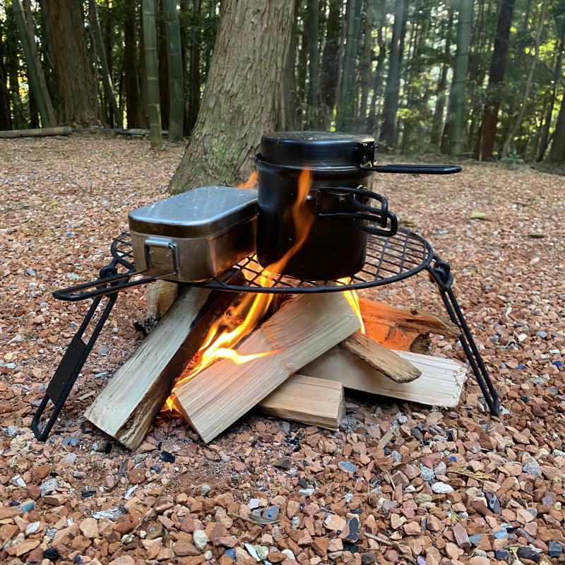 今回は直火で焚き火をしました。薪をガンガン焚きました。