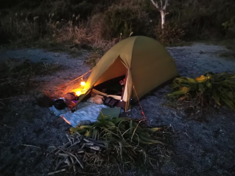 バス停から磯を歩いて目的の野営ポイントへ来たのですが…